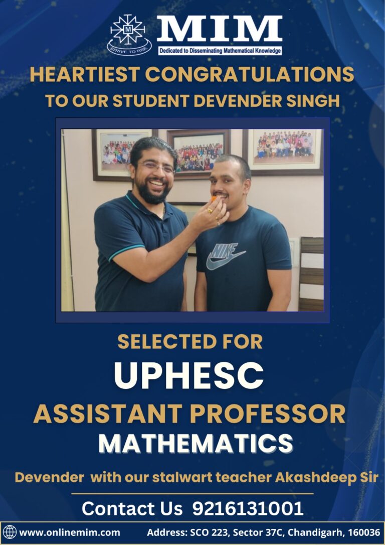 Joining MIM Academy was the best decision of my career. The guidance, personal attention, and in-depth teaching methods helped me clear my doubts and stay focused. The environment here is motivating and the teachers truly care about our success. Thanks to MIM, I was able to achieve my dream and get selected as an Assistant Professor in Mathematics